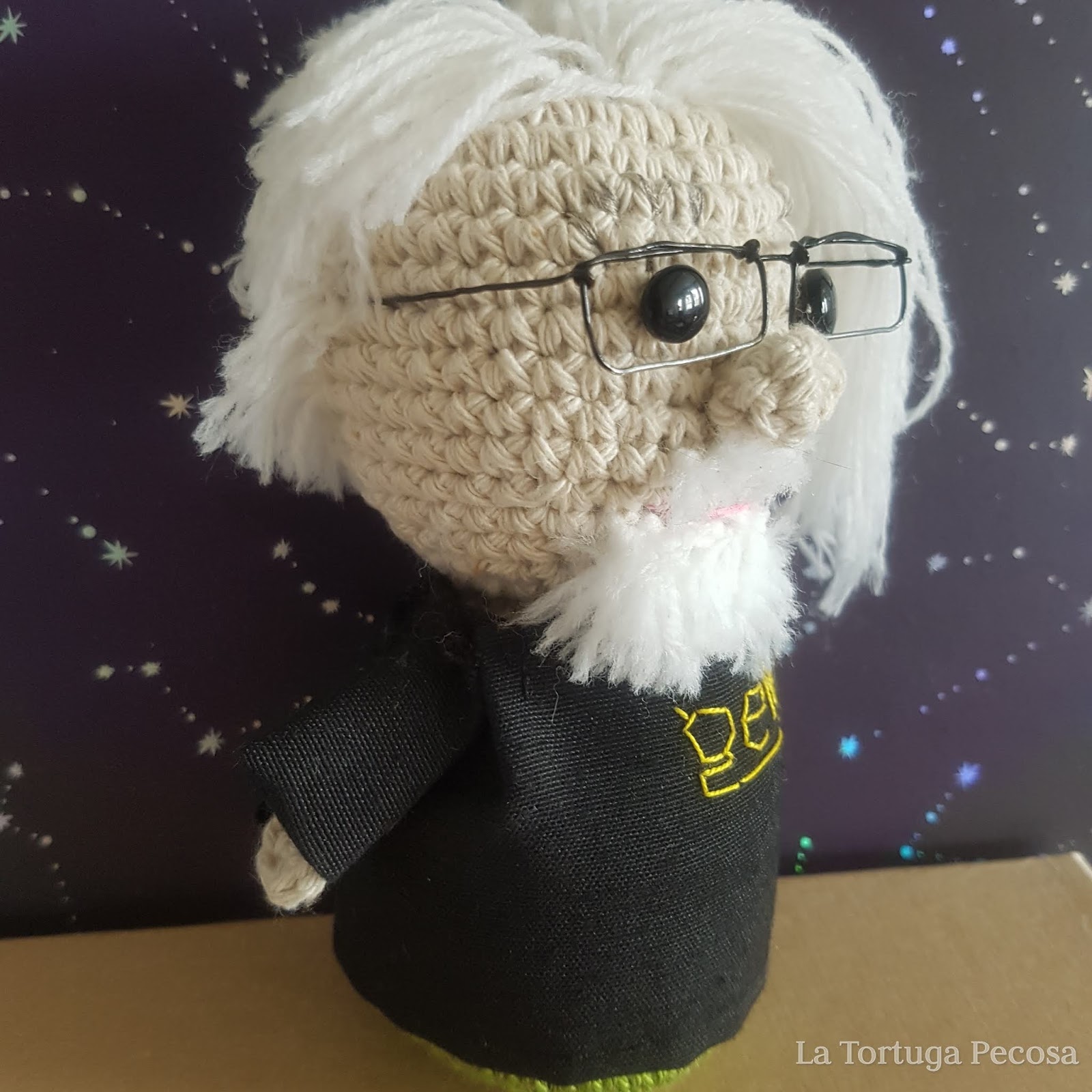 Hoy llega este simpático amigurumi, encargo personalizado. A través de unas fotos y dando algún dato de la persona, se pudo hacer este amigurumi majete.
